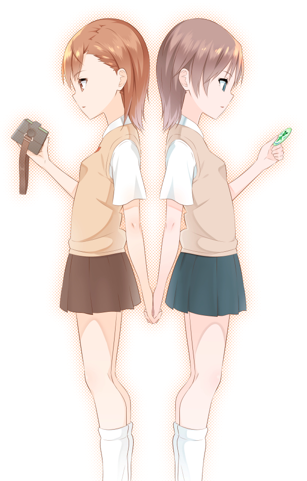 2girlsback-to-backbadgebare armsbreastsbrown eyesbrown hairbrown sweaterbrown sweater vestbrown vestemblemfeet out of framefrom sidegogglesgrey skirthalftonehalftone outlineholdingholding badgeholding gogglesholding handsholding removed eyewearkneehighsmedium hairminiskirtmultiple girlsoutlineparted lipspleated skirtschool emblemschool uniformshort sleevessiblingssistersskirtsleevelesssleeveless sweatersmall breastssocksstandingsummer uniformsweatersweater vesttokiwadai school uniformunworn eyewearunworn gogglesvestwhite backgroundwhite sleeveswhite socks