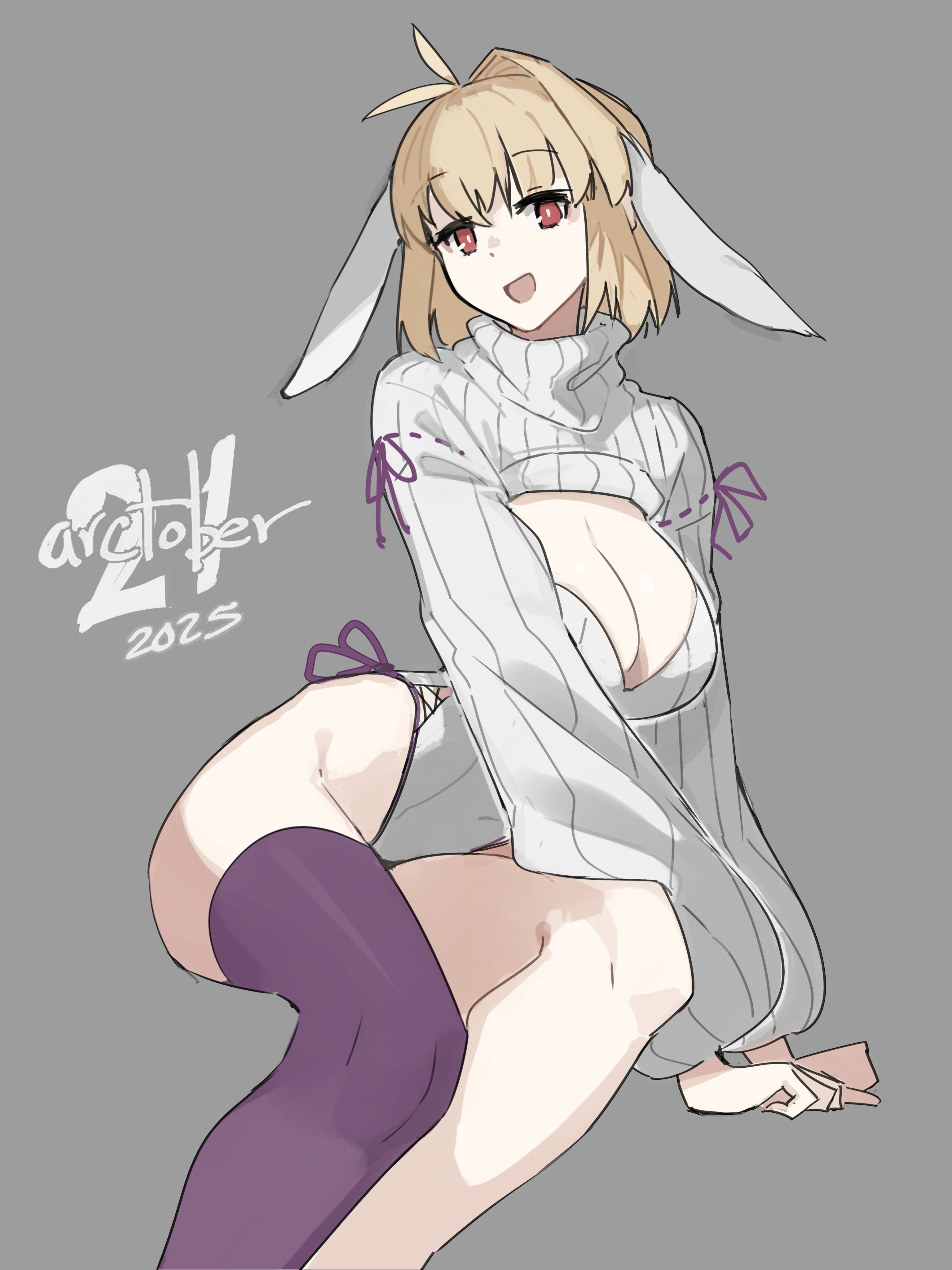 1girlanimal earsblonde hairbreastscleavagecleavage cutoutclothing cutoutdatedfake animal earsgrey backgroundhighleghighleg leotardlarge breastsleotardplayboy bunnyrabbit earsred eyesshort hairsimple backgroundsolowhite leotard