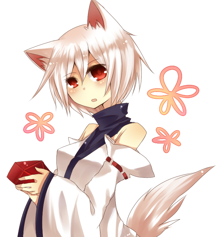 1girlanimal earsdetached sleevesfemale focushair between eyeshathigh collarred eyesshort hairsolotailtokin hatwolf ears