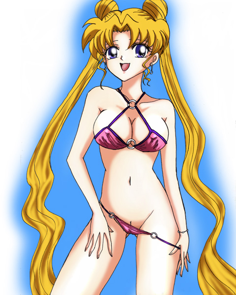 1990s (style)1girlbikinibikini pullblonde hairbreastscleavageclothes pullcovered erect nipplescowboy shotdouble bunfemale focuslarge breastslong hairnavelpussypussy peekretro artstylesoloswimsuittwintailsundressingvery long hair