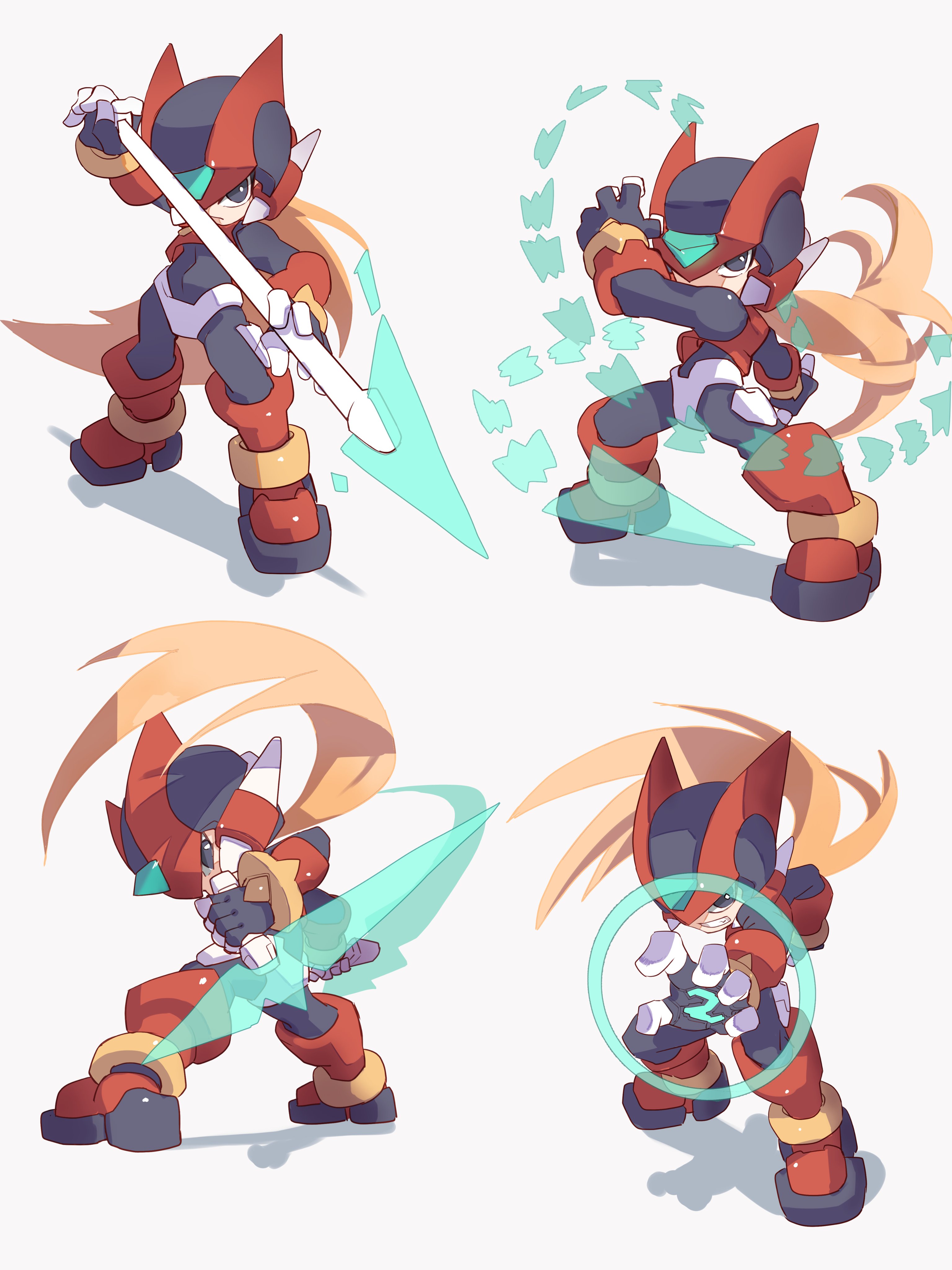 ciel (tsukihime), tsukihime, blue footwear, lowres, 00s, 1girl, black keys (type-moon), blue dress, blue eyes, blue hair, boots, claws, collar, cross, cross print, dress, long sleeves, looking at viewer, multiple views, shoelaces, short hair, standing, weapon