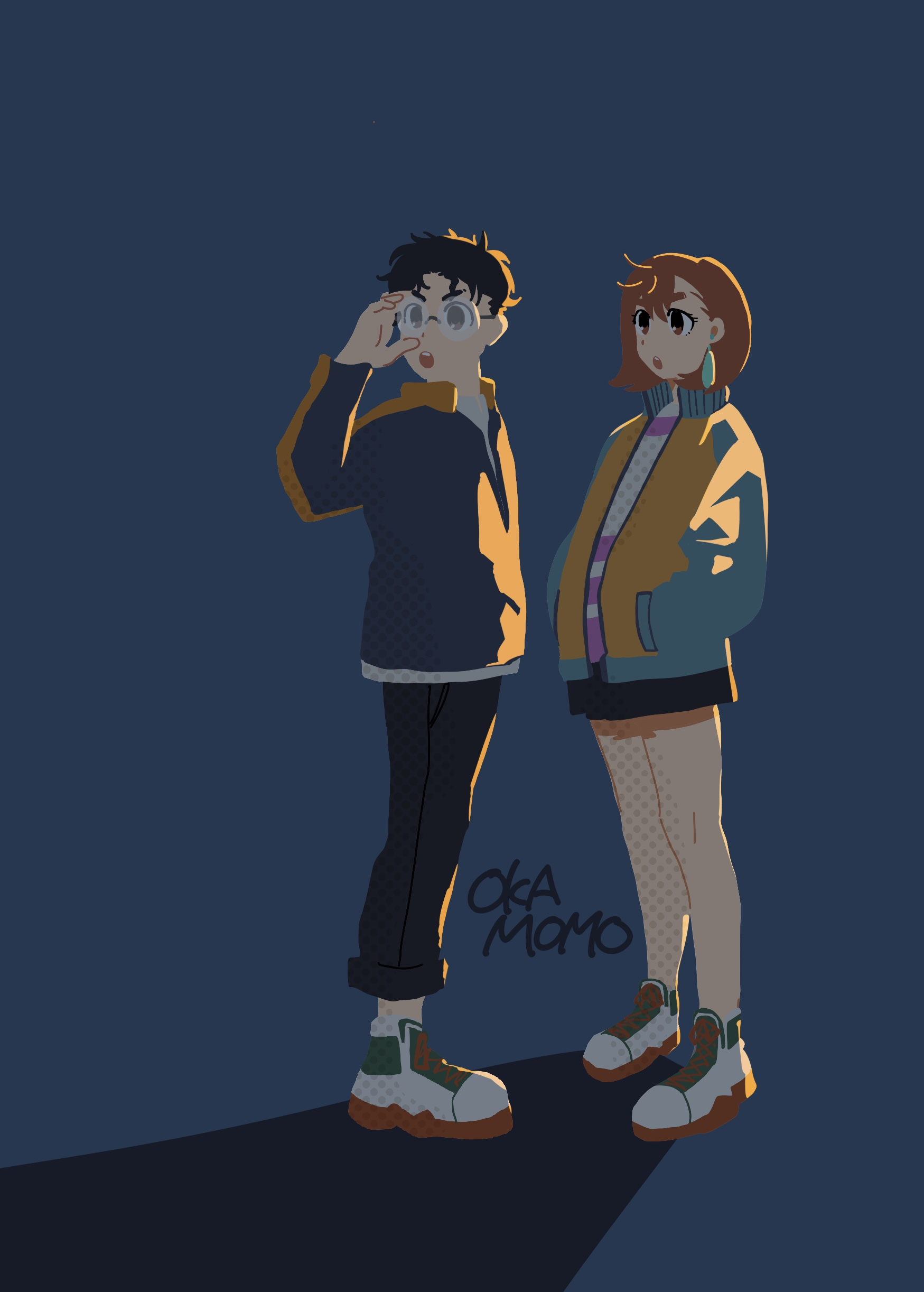 kawakami tetsuya, fumika, kanaka, kasai haruno, kasai natsuka, nojima kaname, shigofumi, silver hair, highres, official art, scan, 00s, 1boy, 3girls, black hair, brown hair, earrings, formal clothes, glasses, hat, jewelry, multiple girls, necktie, pendant, shako cap, staff, suit, yellow eyes