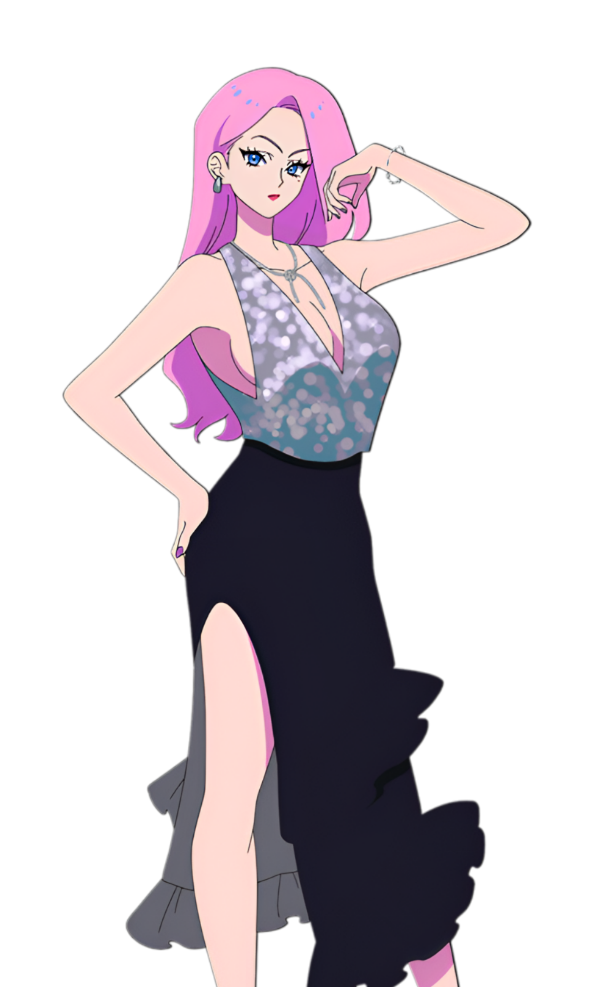 1girlblack skirtblue eyesdresslet's play: quest-darake no my lifelong hairlooking at viewermckenzie monicapink hairskirtupper body