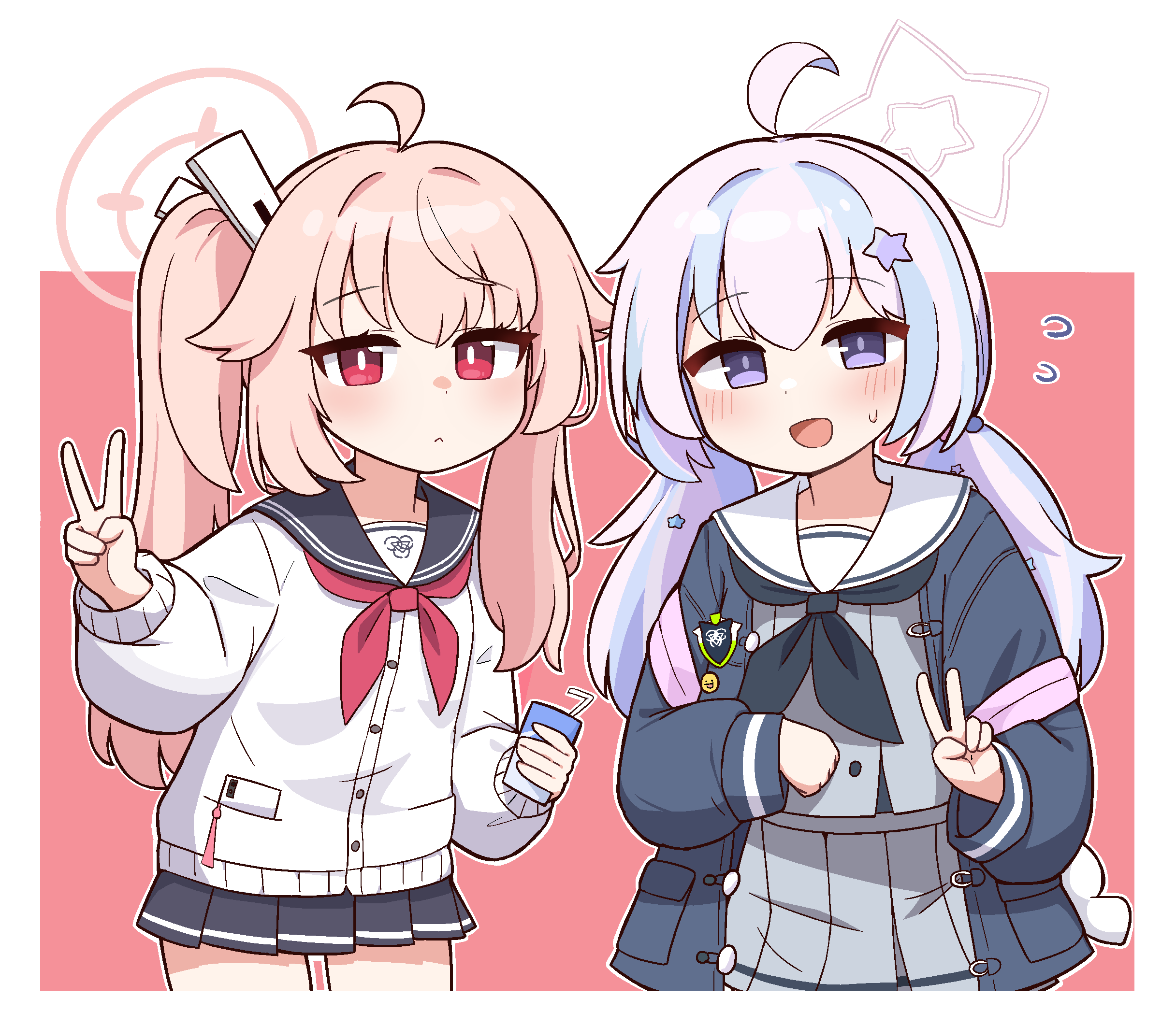 asanagi, aoi minamo, itou yukino, real drive, 2girls, ass, blue eyes, blue hair, bow, breasts, brown eyes, brown hair, curvy, female focus, hip focus, huge ass, huge breasts, kneepits, looking back, multiple girls, pink bow, school uniform, serafuku, shortstack, standing, wide hips