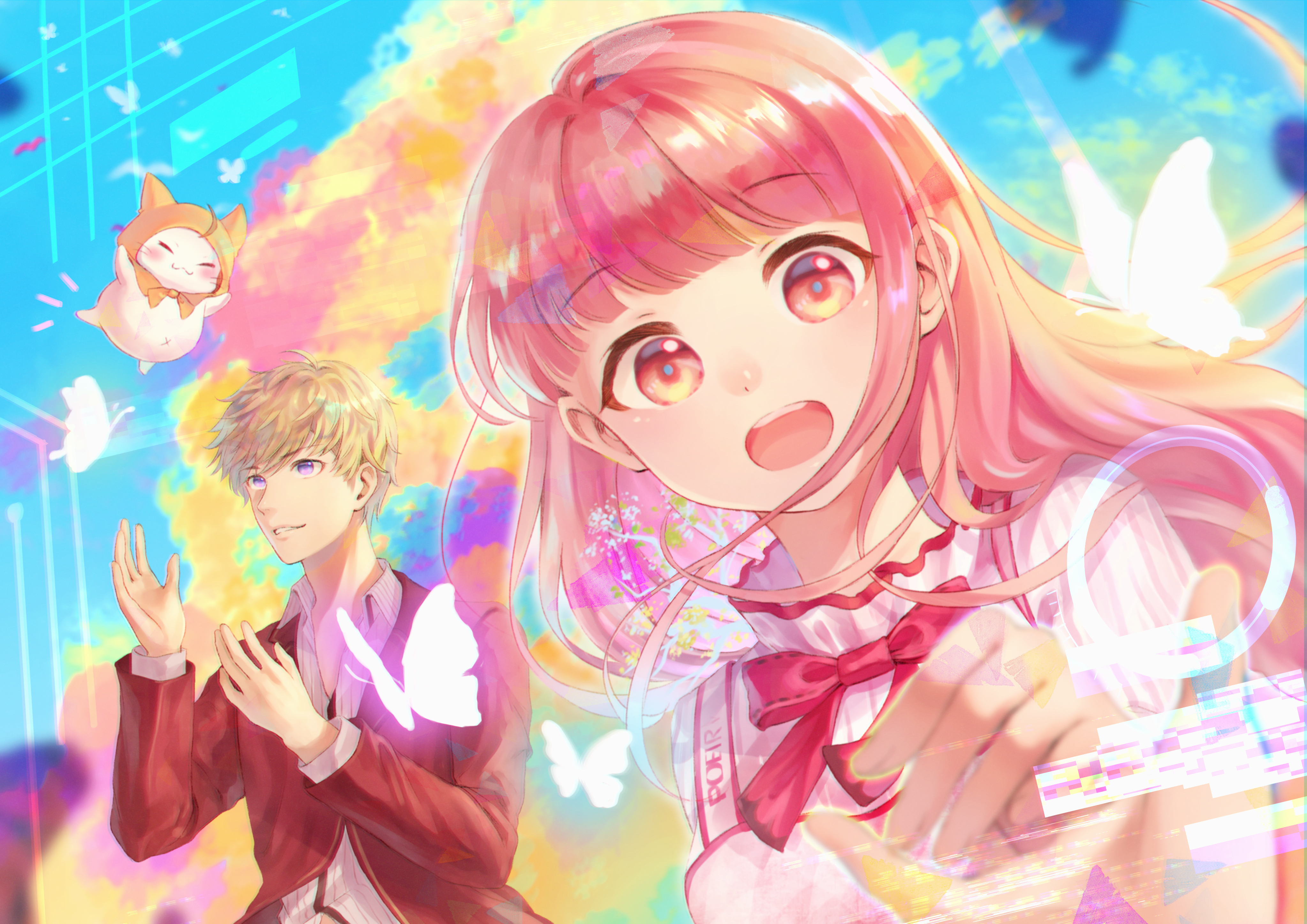 1boy1girlahogeanimalblonde hairblue skybowbowtiebrown eyesbugbutterflycatcloakclosed eyesclothed animalclothes writingcloudcollared shirtdot nosedressdress shirtfloatingfloating hairfrilled shirt collarfrillshappyhoodhooded cloakinsectjacketlayered sleeveslight blushloen (shining nikki)long hairlong sleeveslooking at animallooking at viewermessy hairnotice linesopen mouthpinafore dresspink dresspink hairpinstripe patternpinstripe shirtpurple eyesred bowred bowtiered jacketshirtshort hairskysleevelesssleeveless dresssmiletaremeteethupper bodyupper teeth onlywhite catwhite shirtwindyellow cloak