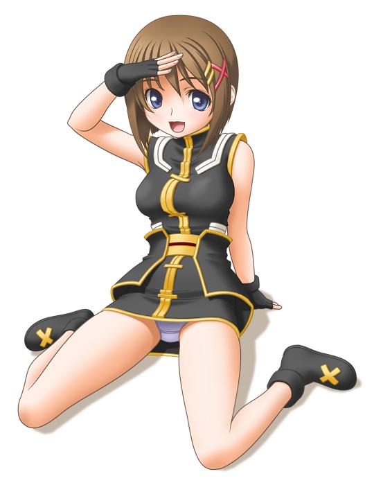 00s1girlblue eyesbrown hairfemale focusfingerless glovesgloveshair ornamentpantiesshort hairsolounderwearx hair ornament