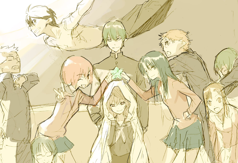 00s5boys5girlschalkboardclassroomeveryonegakuranglassesmultiple boysmultiple girlsschoolschool uniformsketchsmilestar (symbol)