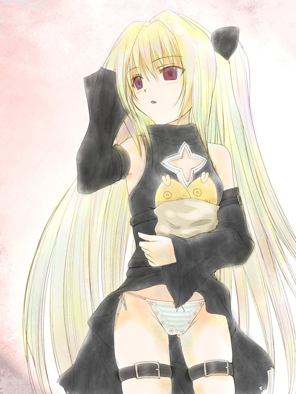 00sblonde hairdetached sleeveslong hairpantiesred eyessolostriped clothesstriped pantiesthigh strapunderwear