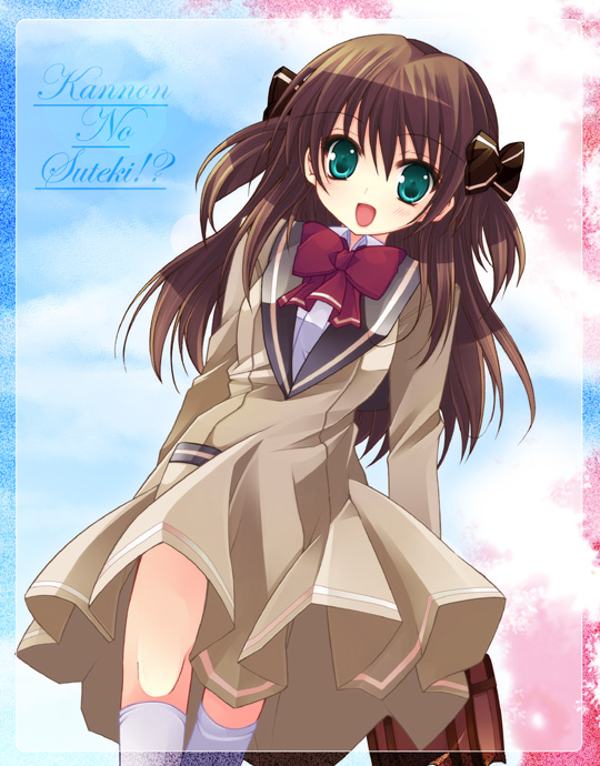 :d10s1girlaqua eyesbagblushbowbowtiebrown haircherry blossomsdutch anglefemale focusgreen eyeslong hairlong sleeveslooking at vieweropen mouthoutdoorsred bowred bowtieschool bagsmilesolospring (season)taremethighhighswhite thighhighszettai ryouiki