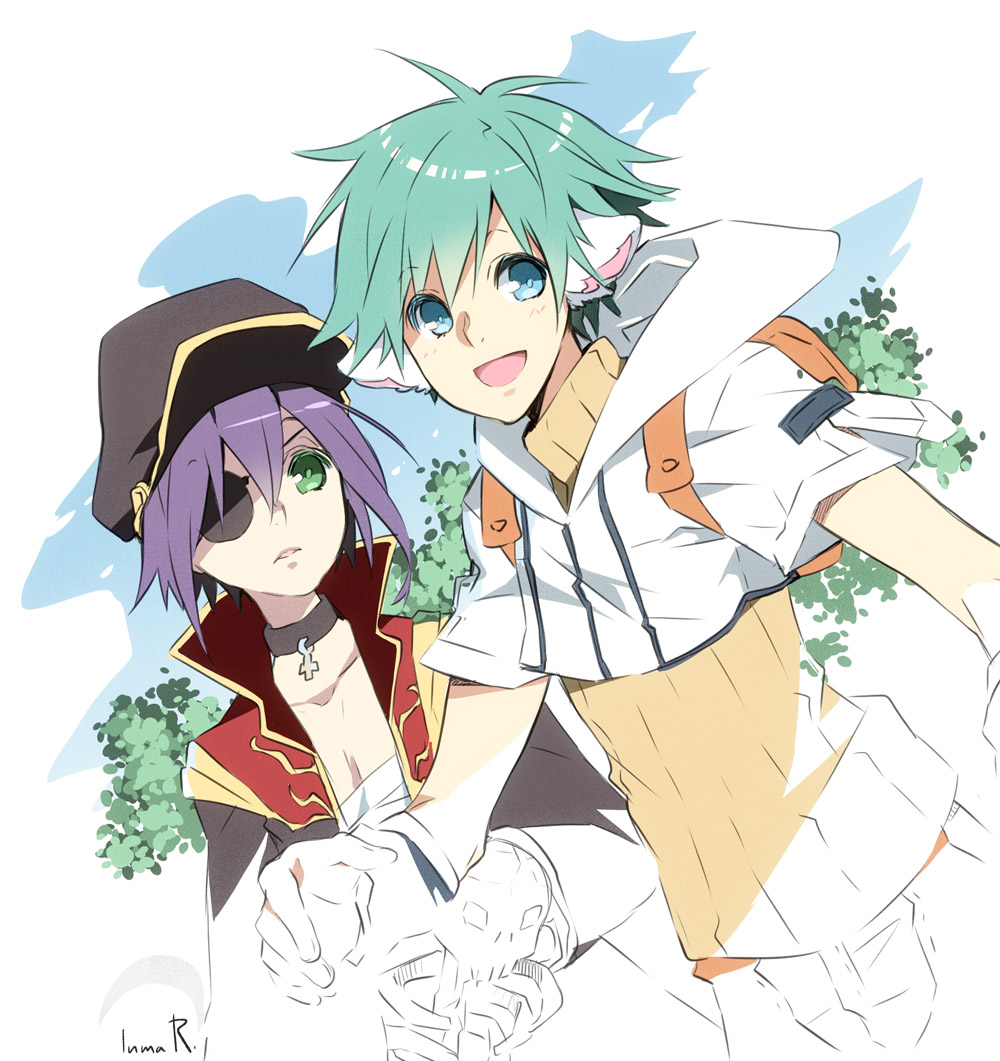 :d2boysanimal earsblack hatblue eyesbrown shirtcat boycat earschokercoatcropped jacketcrosscross chokereyepatchgold trimgreen eyesgreen hairgrey chokerhatjacketlooking at viewermale focusmultiple boysnewsboy capopen mouthpurple hairred coatshirtshort hairshort sleevessmiletreeupper bodywhite jacket