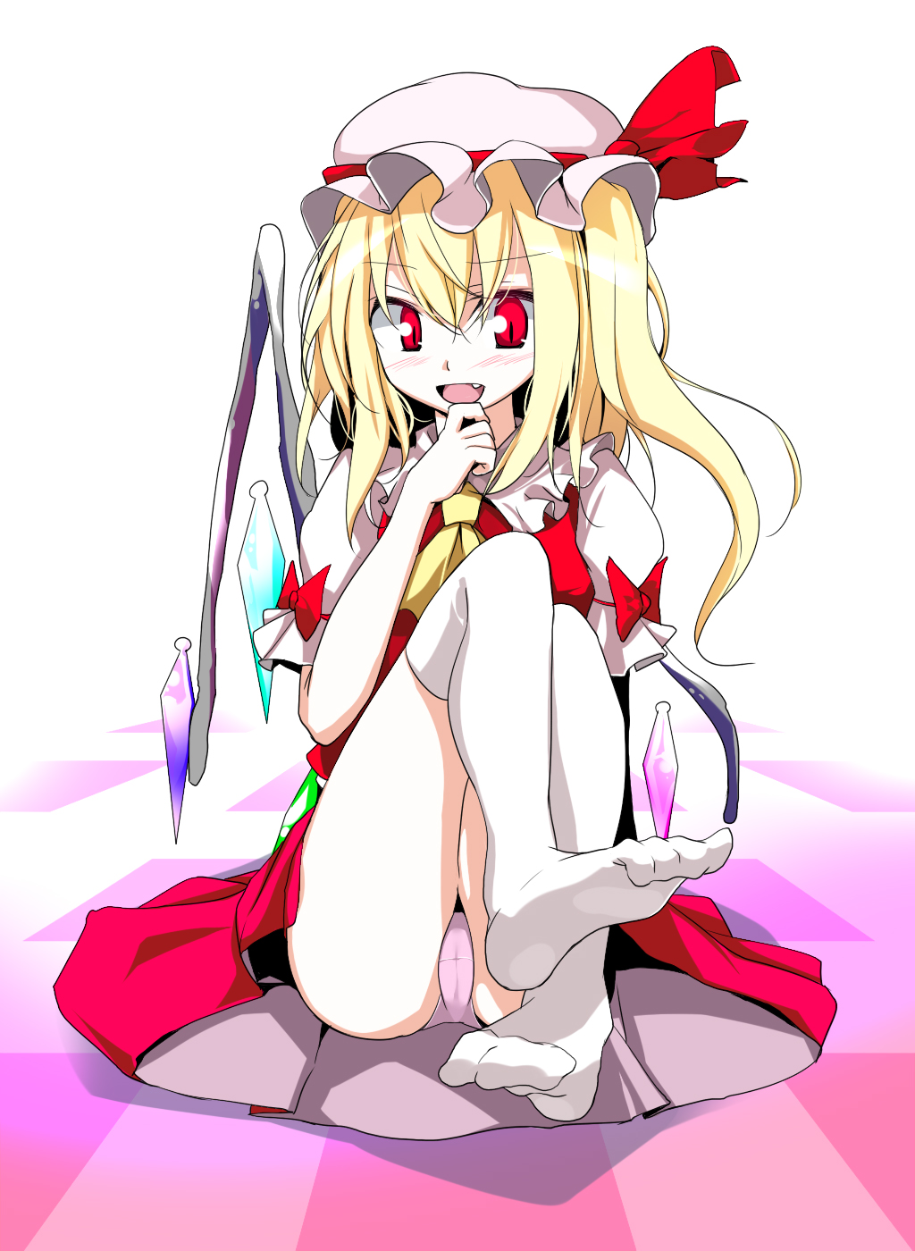 1girlblonde hairblushcameltoefeetfemale focusfoot focushatpantiesred eyessolothighhighsunderwear