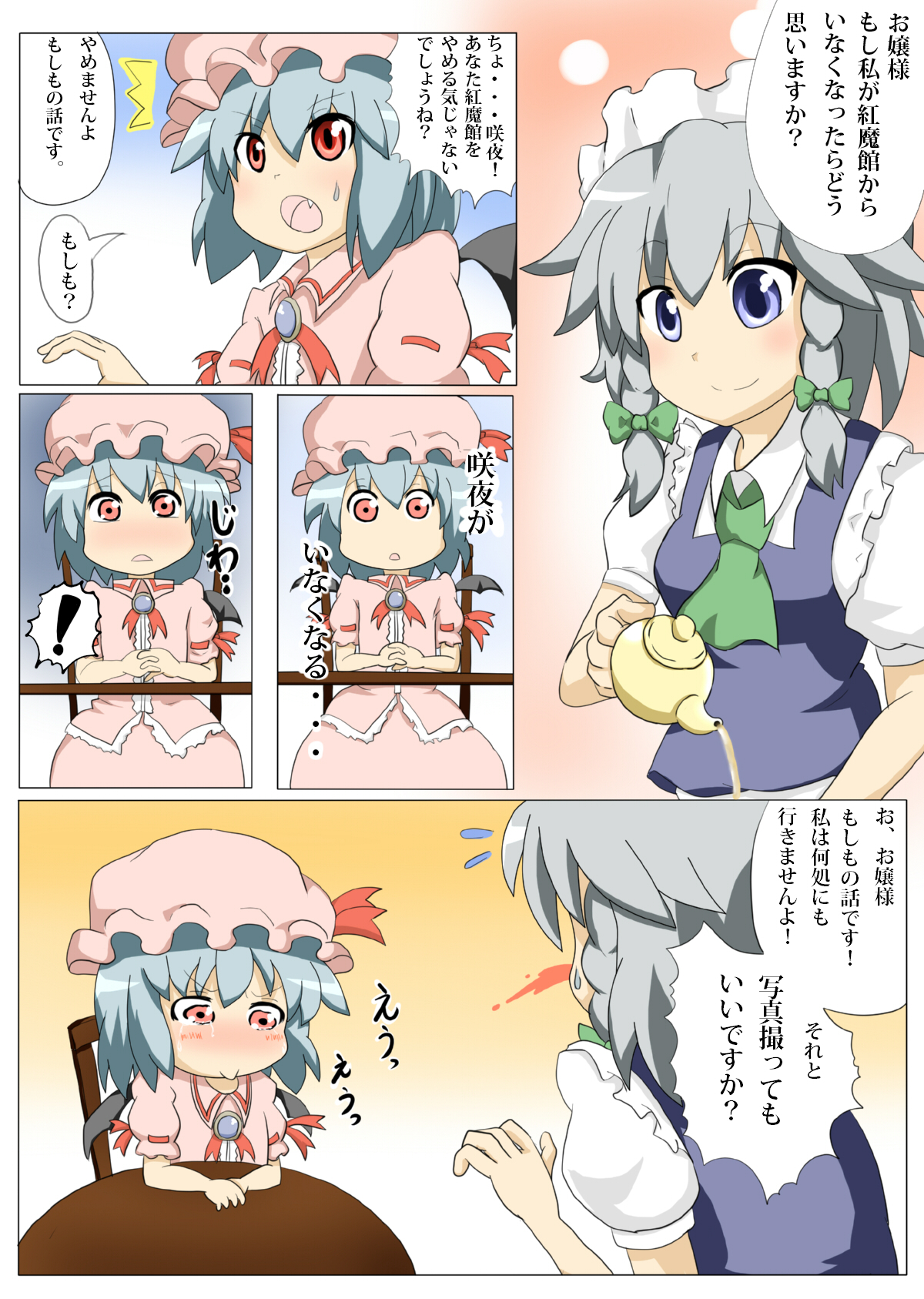 1boybat wingsbloodblue eyesblue hairblushbraidcomicfemale focushairbandhatnosebleedpoutred eyesshort hairtwin braidswings
