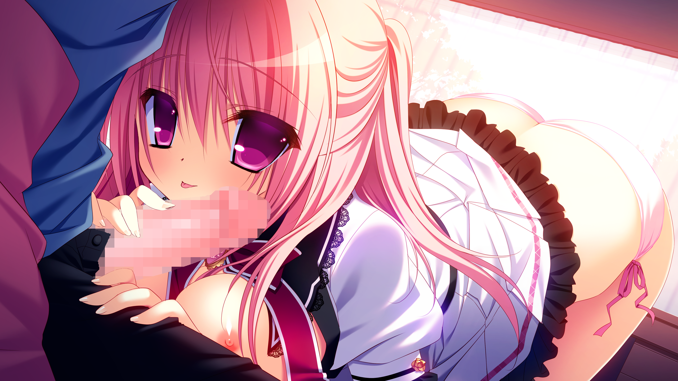 ebi (shrimp eleven), lacey (fall 2025) (pokemon), lacey (pokemon), nintendo, pokemon, pokemon masters ex, absurdres, commentary, highres, symbol-only commentary, 1girl, arched bangs, black dress, brown eyes, candle, candle wax, candlestand, dress, fire, hair ornament, hairclip, holding candlestand, index finger raised, juliet sleeves, long sleeves, maid, maid headdress, official alternate costume, photo (object), pink hair, puffy sleeves, short hair, solo