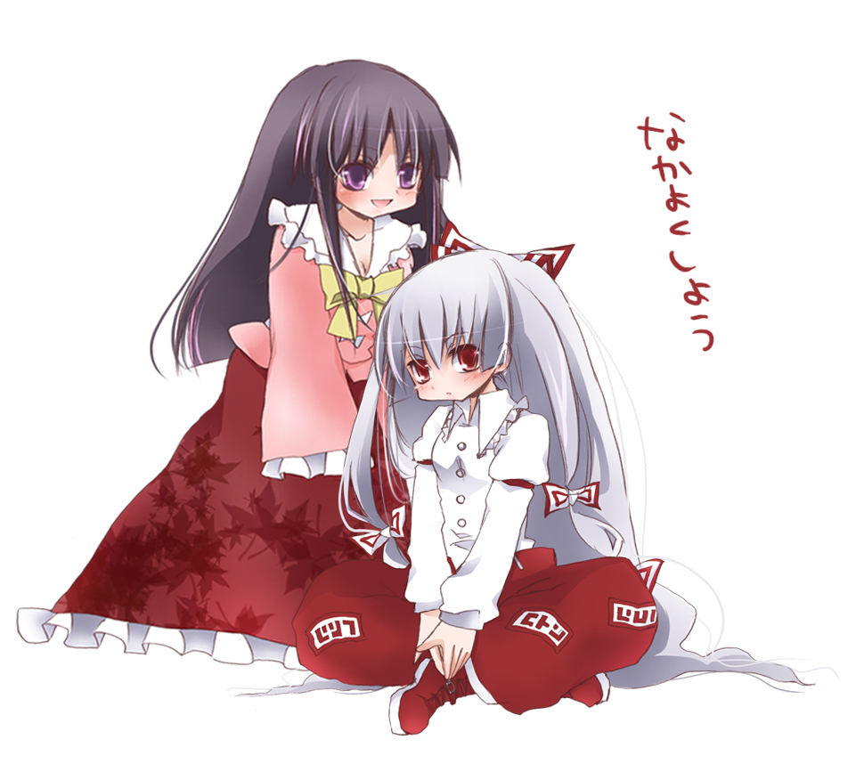 2girlsblack hairbowfemale focushair bowhair ribbonlong hairmultiple girlsmultiple hair bowspurple eyesred eyesribbonsittingstanding