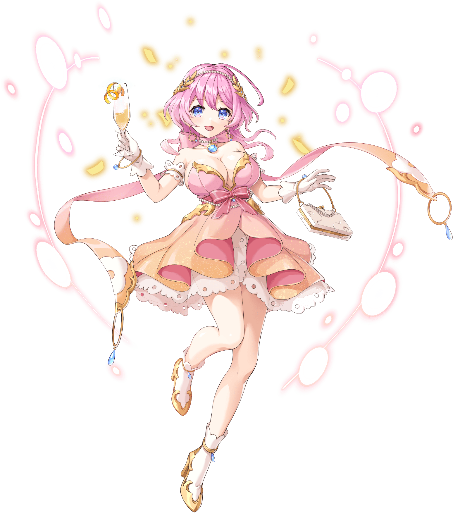 1girlahogebagbare shouldersblue eyesbowbreastscleavagecupdressdrinking glassearringsfull bodygloveshandbaghigh heelsholdingjewelrylaurel crownnecklaceofficial alternate costumeopen mouthpantiespink bowpink hairsee-through clothessideboobsolotransparent backgroundunderwearwhite gloveswhite pantieswine glass