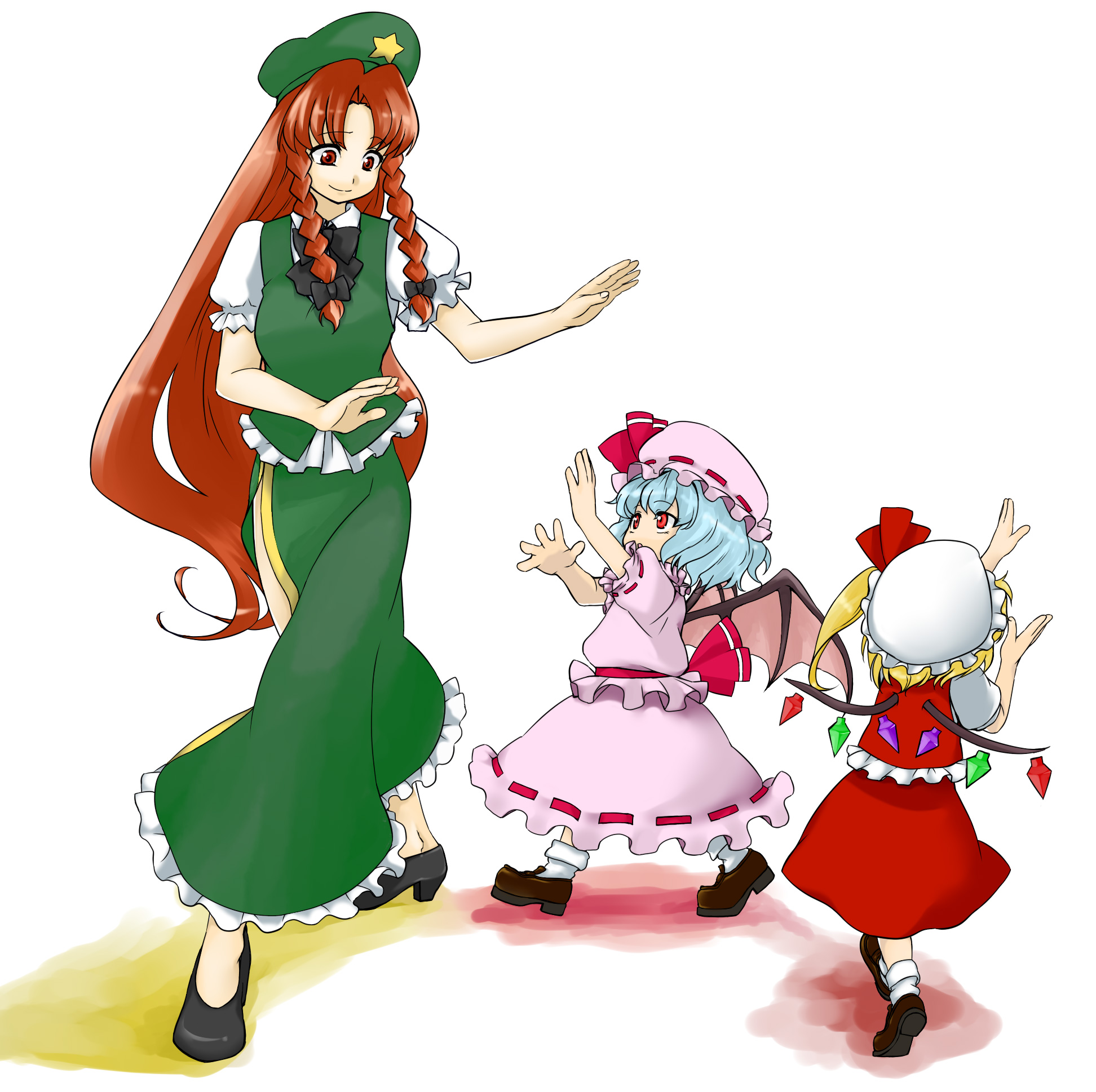 suiren (mystia6b), aki minoriko, aki shizuha, mystia lorelei, touhou, 3girls, animal ears, blonde hair, brown eyes, closed eyes, dress, female focus, food, fruit, grapes, hair ornament, hat, leaf, leaf hair ornament, maple leaf, multiple girls, pink hair, short hair, simple background, white background, wings, yellow eyes