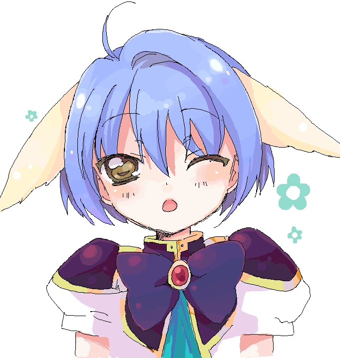 00s1girlanimal earsblue hairblushcat earschilddressfemale focuslooking at viewerone eye closedpuffy sleevesribbonshort dressshort hairsolowinkyellow eyes