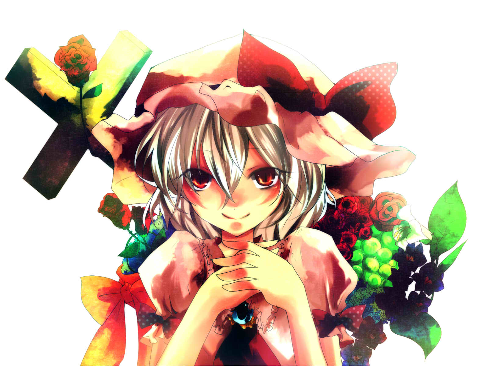 kusukusu, marie rudel, sakura strasse, absurdres, highres, blonde hair, blue eyes, blush, cherry, food, fruit, headphones, mouth hold, skirt, solo
