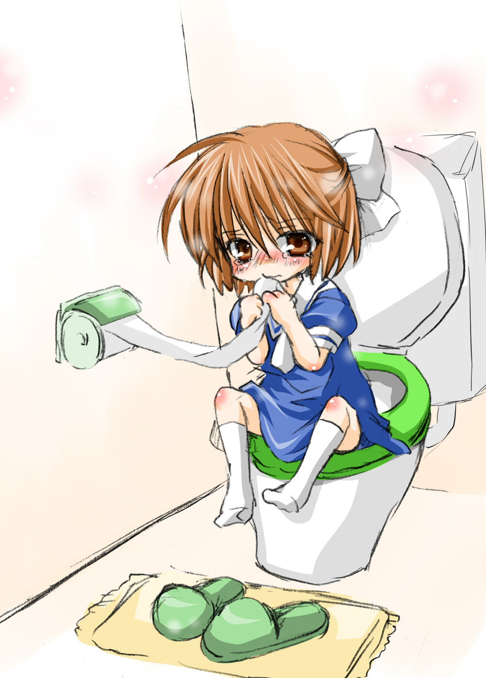 00s1girlblushbrown eyesbrown hairchildfemale focusschool uniformslipperssolotearstissuetoilettoilet use