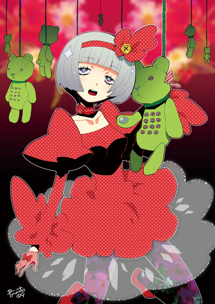 aya.m, rumia, embodiment of scarlet devil, touhou, highres, 1girl, blonde hair, cigarette, eyelashes, female focus, fingernails, gradient hair, hair ribbon, lips, long fingernails, multicolored hair, nail (hardware), nail polish, portrait, red eyes, red nails, ribbon, short hair, smoking, solo