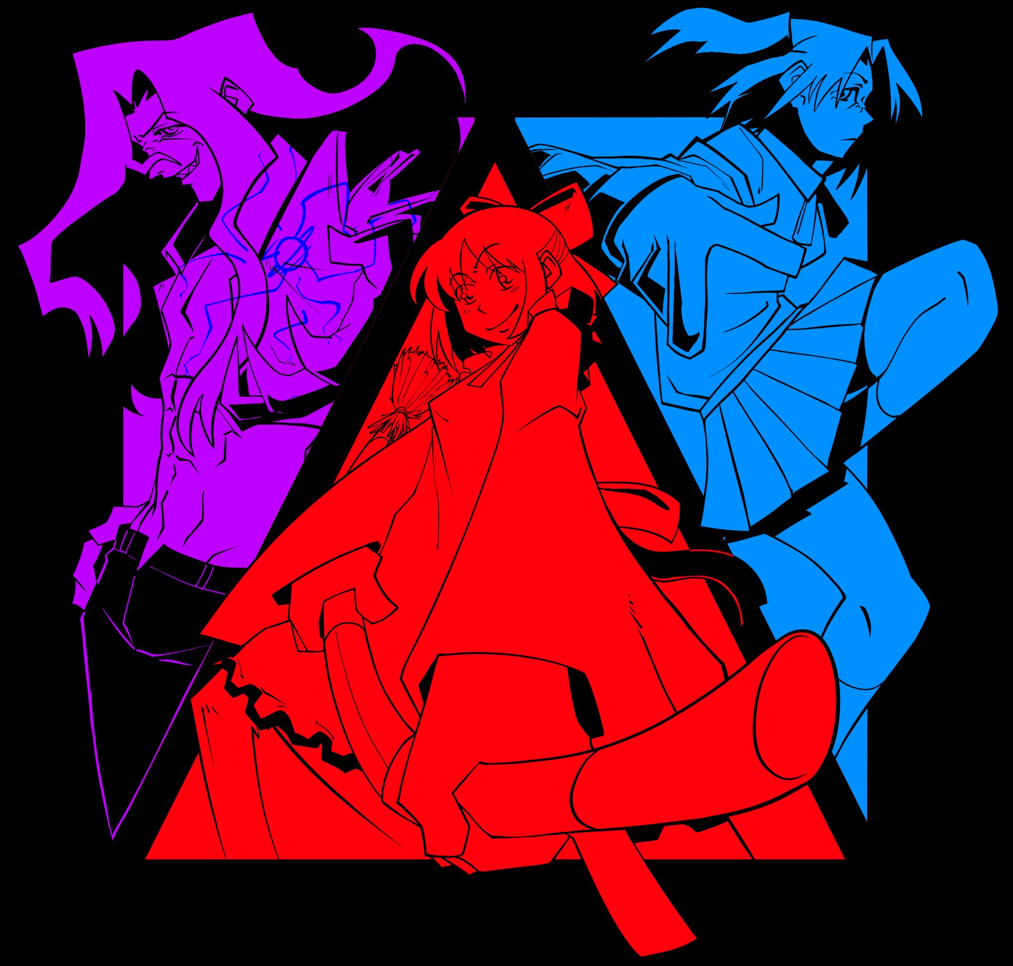 1boy2girlsapronblack pantsbowbroomcollared shirtelectricityelectrokinesisevil grinevil smilefingernailsfloating hairfrom sidegrinhair bowhidden weaponholdingholding broomjapanese clothesjumpingkatanalong hairlooking at viewermaidmonochromemultiple girlsopen clothesopen flyopen shirtpantsribbonschool uniformsharp fingernailssharp teethsheathsheathedshirtskirtsmilesocksswordteethtwintailsvampirevestwavy hairweapon