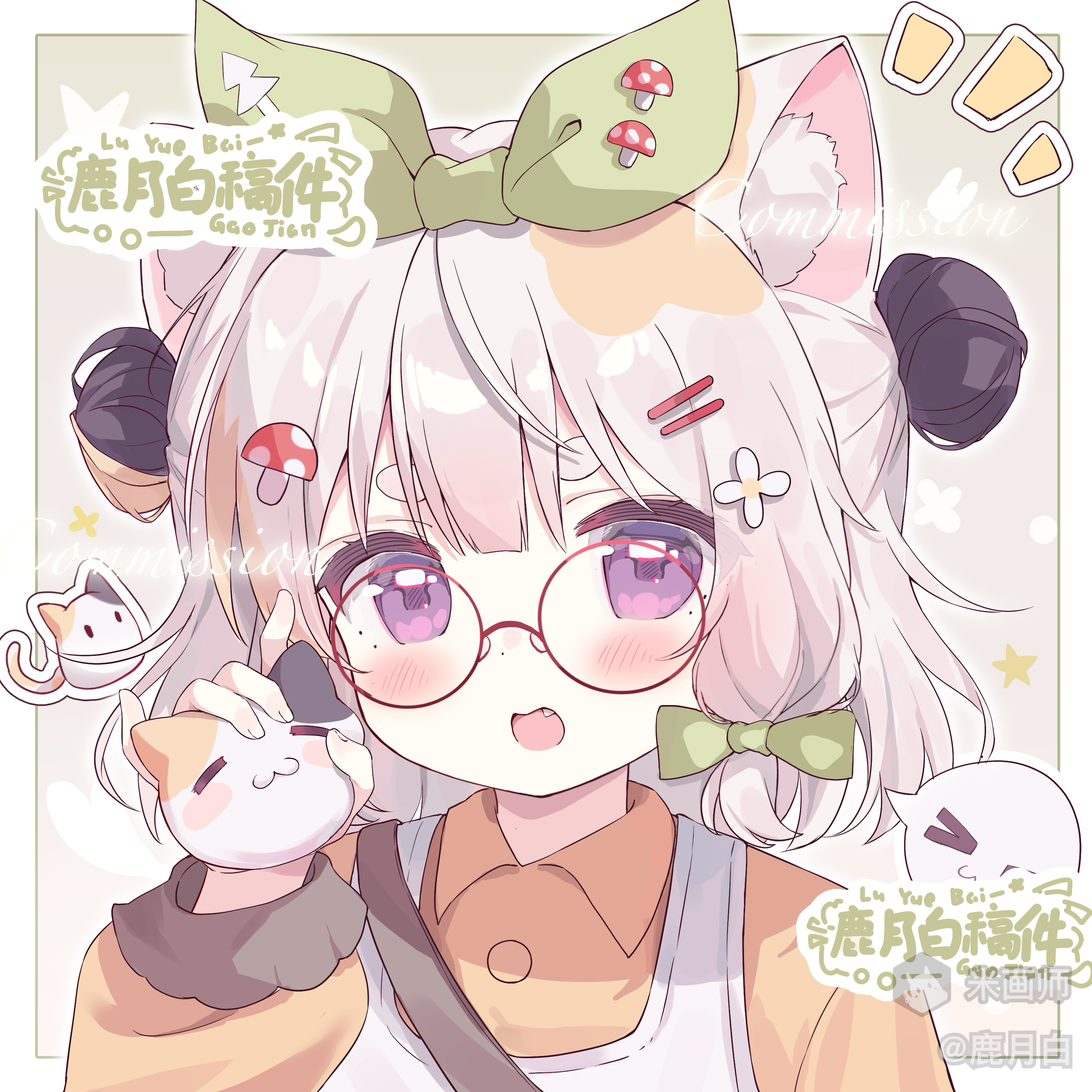 1girlanimal ear fluffanimal earsblushcalico (pattern)calico catcat earscat girlcollared shirtdouble bunflowerfood-themed hair ornamentgreen ribbongrey hairhair bunhair flowerhair ornamenthair ribbonhaircliplu yue baimihuashi usernamemulticolored hairmushroom hair ornamentopen mouthparallel hairclipsportraitribbonshirtshort hairsolovestwhite vestyellow shirt