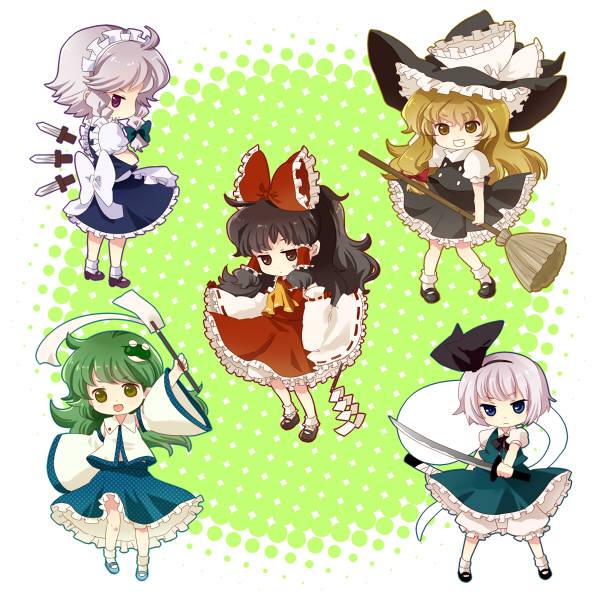 hakurei reimuizayoi sakuyakirisame marisakochiya sanaekonpaku youmukonpaku youmu (ghost)