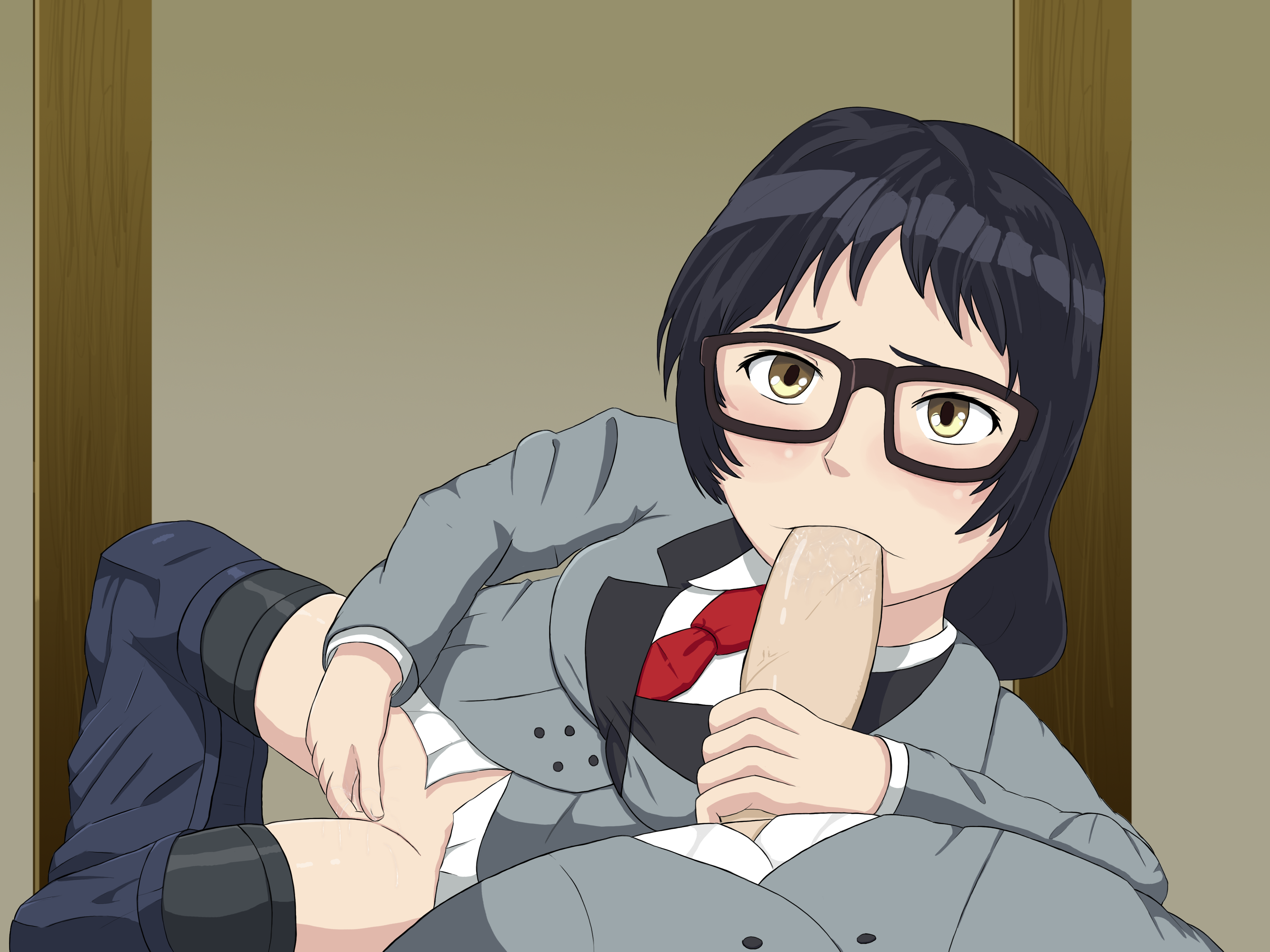 black hairclothed sexclothingfellatiofemaleFlag for Deletionglassesmasturbationopen mouthoralpenisschool uniformshort hairskirtspread legs