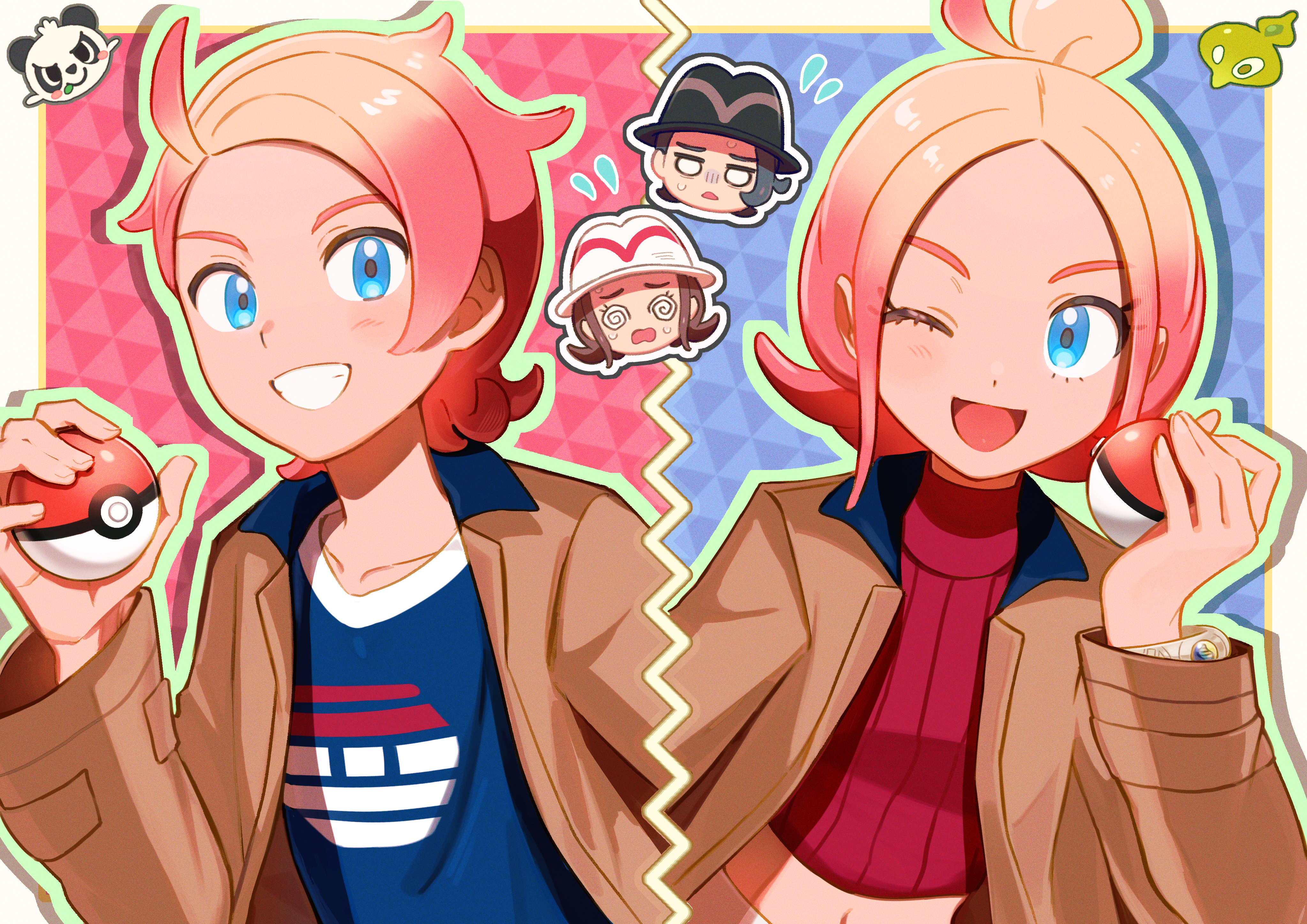 :d2boys2girlsahogeblonde hairblue eyesblue shirtbraceletbrown jacketflying sweatdropsgen 6 pokemongrinholdingholding poke balljacketjewelrylegendary pokemonlong sleevesmultiple boysmultiple girlsone eye closedopen clothesopen jacketopen mouthoutlinepoke ballpoke ball (basic)pokemon (creature)print shirtred shirtribbed shirtshirtsmileteeth