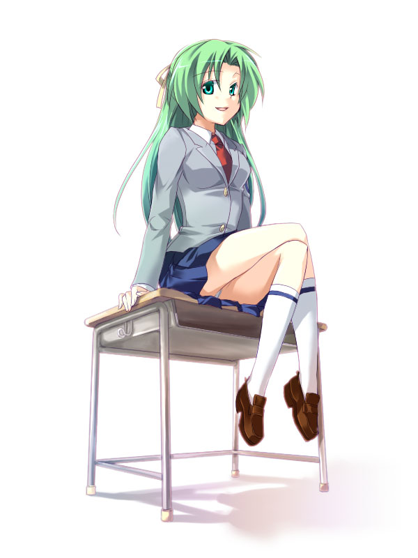 00s1girlcrossed legsdeskfemale focusgreen eyesgreen hairhair ornamenthair ribbonhalf updoloaferslong hairmatching hair/eyesminiskirtnecktieon deskpantiespantyshotribbonschool uniformshoessittingskirtsmilesockssolounderwearupskirt