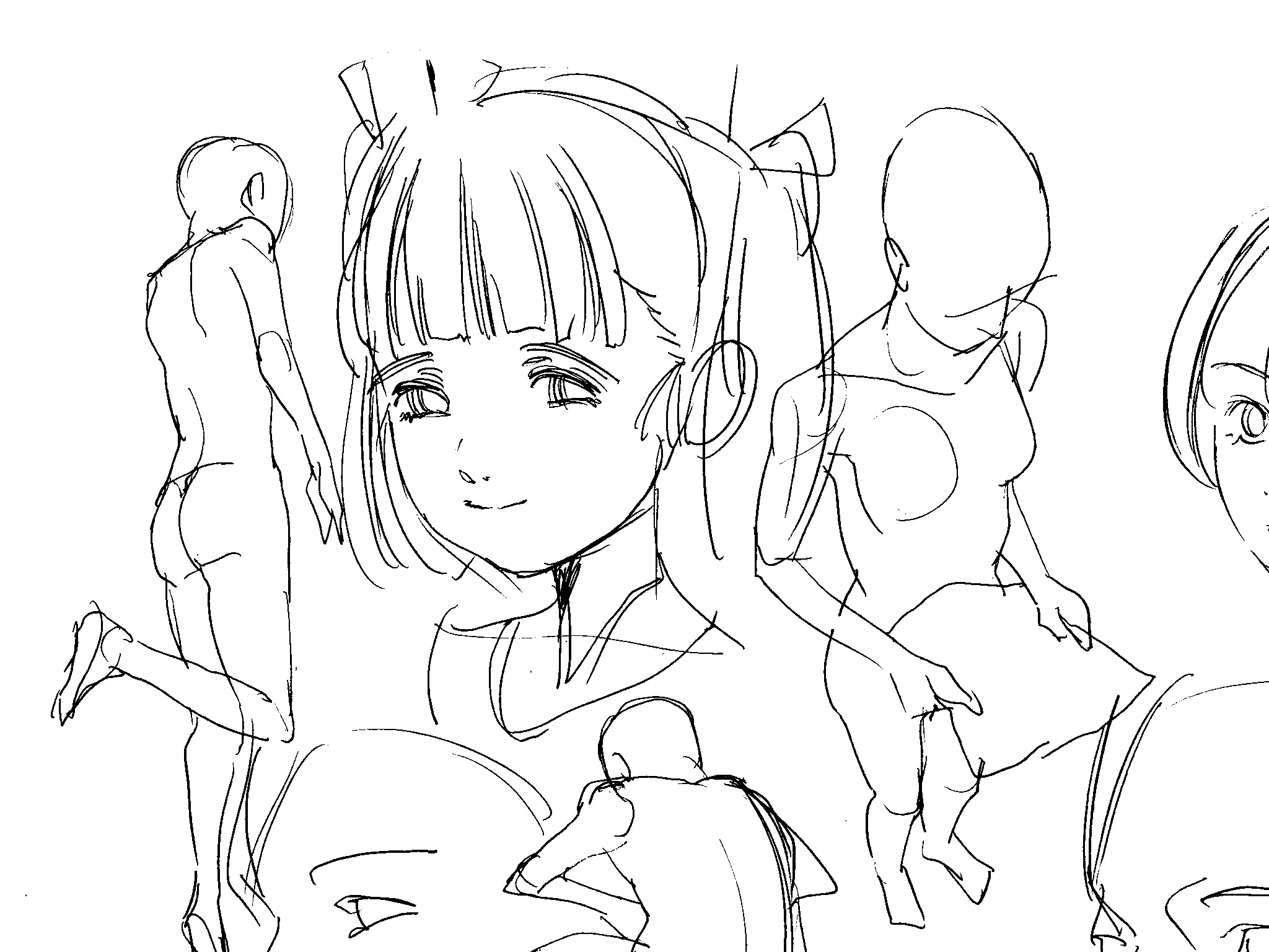 64vii, takino tomo, azumanga daiou, commentary, highres, 1girl, :d, ^ ^, alternate hairstyle, arms up, azumanga daioh's school uniform, breasts, brown eyes, brown hair, chibi, closed eyes, cowboy shot, from side, hair tie in mouth, hairdressing, long hair, looking down, medium breasts, midriff peek, mouth hold, open mouth, pink serafuku, pink shirt, pleated skirt, ponytail, red skirt, sailor collar, school uniform, serafuku, shirt, simple background, skirt, smile, solo, tying hair, white background, white sailor collar, winter uniform