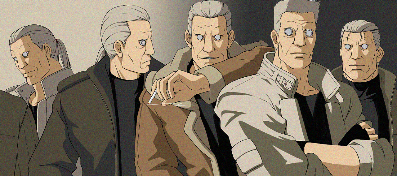 1boycigarettecomparisonfingerless glovesglovesgradient backgroundmale focusmultiple personamultiple viewsponytailupper body