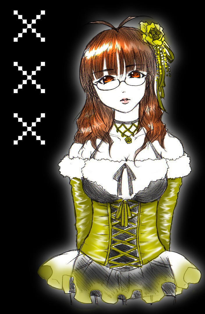 00s1girlantenna hairbrown eyesbrown hairchokerfemale focusflowerglasseshair flowerhair ornamentsketchsolo