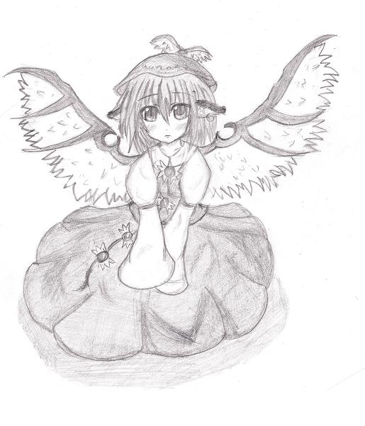 zin, zin amami, original, bad id, bad pixiv id, 1girl, angel wings, breasts, brown hair, female focus, head wings, long hair, medium breasts, pointy ears, solo, wings