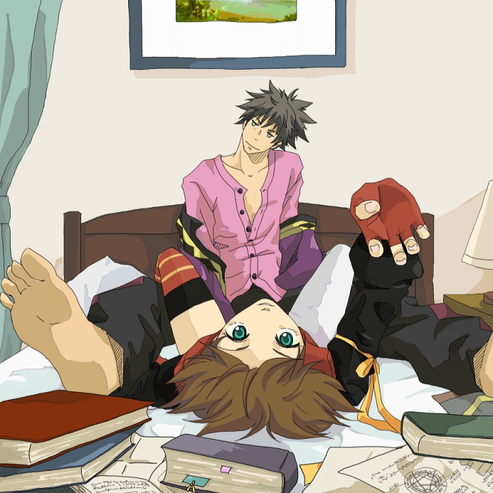 game cg, 1girl, bed, blush, breasts, censored, female focus, long hair, lying, navel, nipples, purple hair, pussy, red eyes, solo, spread legs