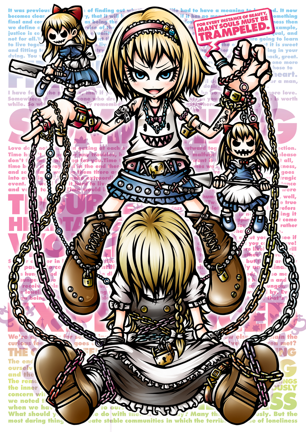 2girlsalternate costumeblonde hairchaincreepyenglish textengrish textfemale focushorror (theme)multiple girlspuppetranguage