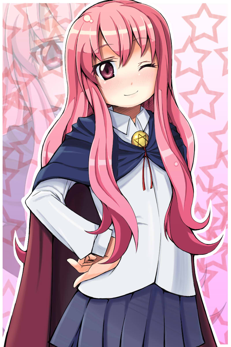 flipper, kinomoto sakura, kinomoto sakura (fluffy sheep), cardcaptor sakura, 1990s (style), 1girl, blue hat, brown hair, child, cowboy shot, female focus, green eyes, hat, holding, holding wand, hoshi no tsue, jester cap, leaning forward, long sleeves, looking at viewer, magical girl, retro artstyle, short hair, shorts, simple background, solo, star (symbol), wand, white background, yellow shorts