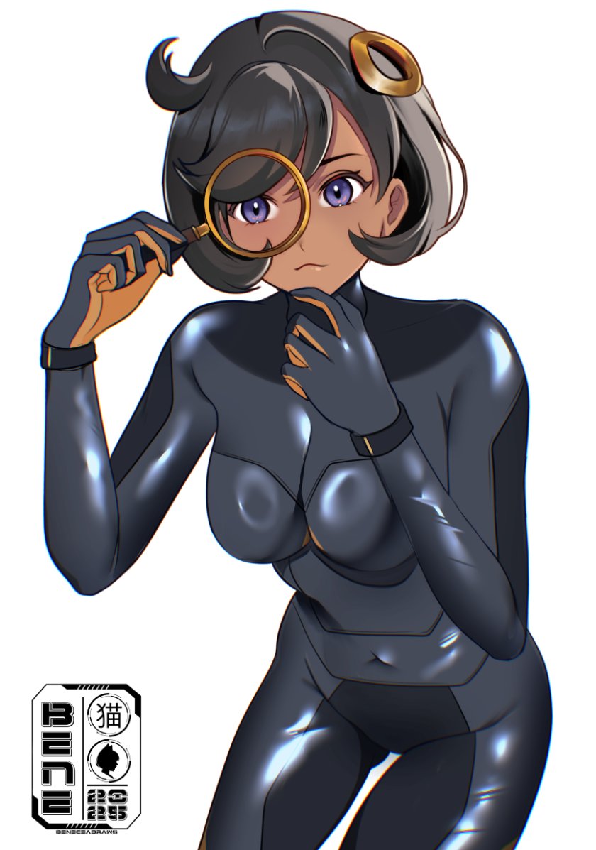:31girl2025black bodysuitblack hairbodysuitbreastsclosed mouthcovered naveldark skindark-skinned femalegloveshair ornamentholdingholding magnifying glasslatexlatex bodysuitleaning forwardlooking at viewermagnifying glassmedium breastsmega stoneno jacketpurple eyesshort hairside ahogesimple backgroundsolothighswhite background