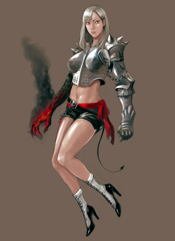 armorblonde hairboobplatebootsbreastplatecoutergauntletshigh heel bootshigh heelsknees together feet apartshoesshort hairshort shortsshortssimple backgroundsoloyellow eyes