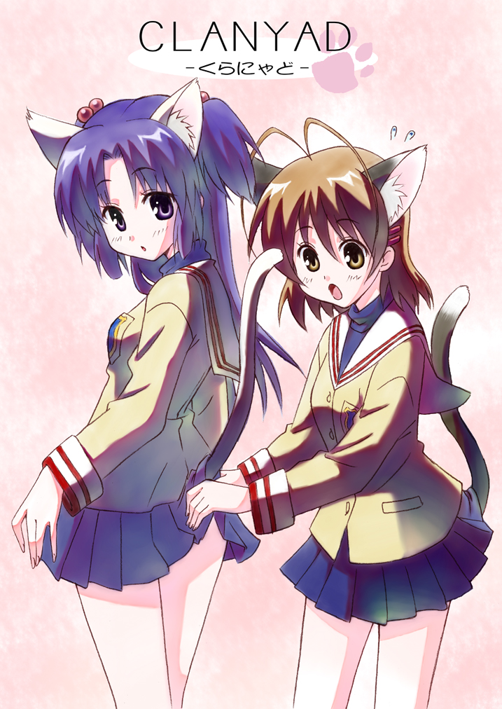 00sanimal earsblue hairbrown eyesbrown haircat earscat taillong hairpurple eyesschool uniformshort hairtailtwintails