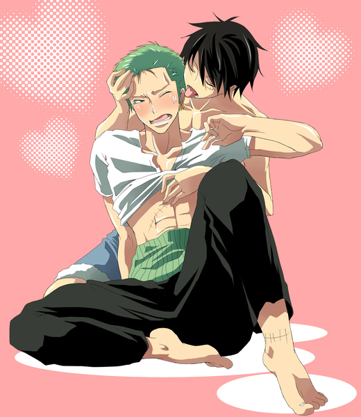 2boysblack hairFlag for Deletiongreen hairharamakihearthumanmalemale onlymultiple boysmultiple malesscarsittingtongueundressingyaoi