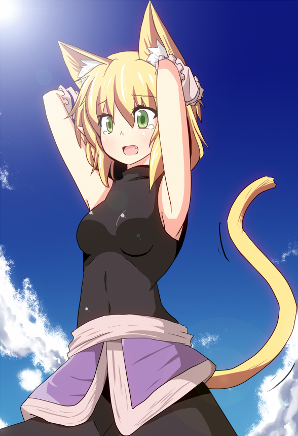 1girlanimal earsarmpitsarms upblonde haircat earscat girlcat tailfangfemale focussleevelesssleeveless turtlenecksolotailtearsturtleneck