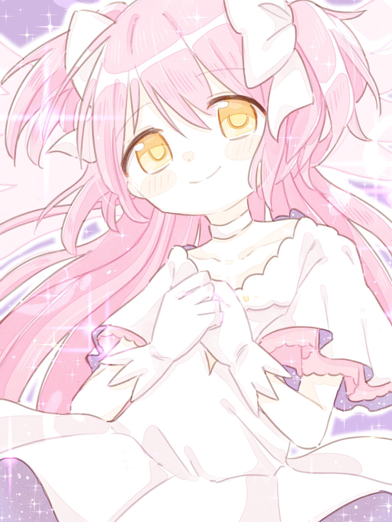 1girlabsurdly long hairanime coloringblurryblush stickersbokehbowchico sukechokerchoppy bangsclose-upcollarbonedepth of fielddot nosedressfloating hairfrilled dressfrillsglintglovesglowinghair between eyeshair bowhalf-closed eyeshands on own chesthands uplayered dresslayered sleeveslong hairlooking at viewerpastel colorspink glovespink hairpink themepink wingspurple backgroundpurple themesidelockssimple backgroundsmilesolosparklestraight hairtaremetransparent wingstwo side upupper bodyvery big eyesvery long hairwhite bowwhite chokerwhite dresswhite themewide sleeveswingsyellow eyes