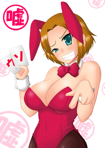 1girlanimal earsapril foolsbrown haircardfake animal earsfemale focusgreen eyesgrinholdingholding cardpantyhoseplayboy bunnyrabbit earsshort hairsmilesolo