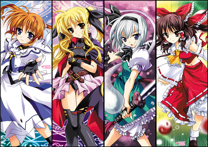 fate testarossafate testarossa (movie 1st form)hakurei reimukonpaku youmutakamachi nanohatakamachi nanoha (movie 1st mode)