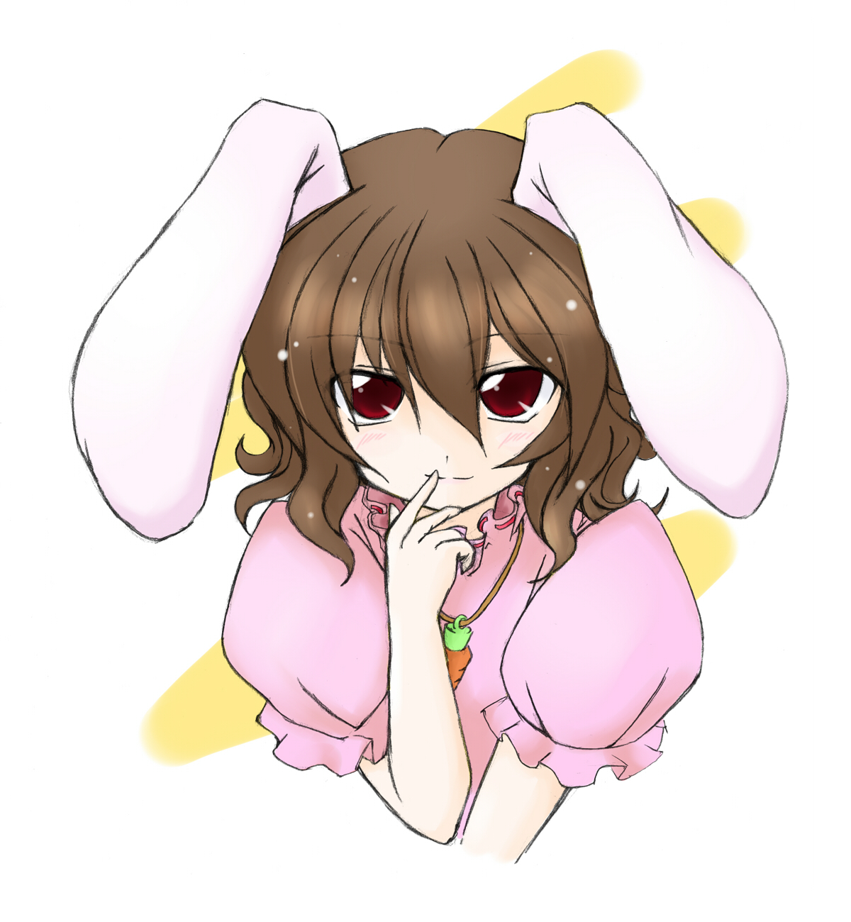 1girlanimal earsblack hairbrown hairfemale focusfinger to mouthrabbit earsred eyesshort hairsolo
