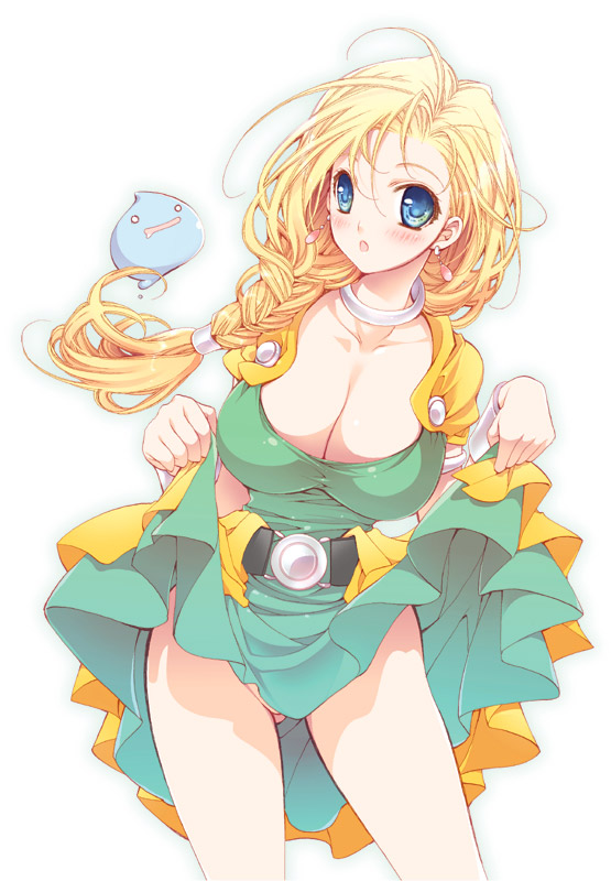 bunny (trickster), trickster (ntreev soft), 10s, 1girl, ahoge, animal ears, blue hair, boots, braid, breasts, cleavage, female focus, fingerless gloves, full body, gloves, midriff, rabbit ears, rabbit tail, red eyes, simple background, skirt, solo, tail