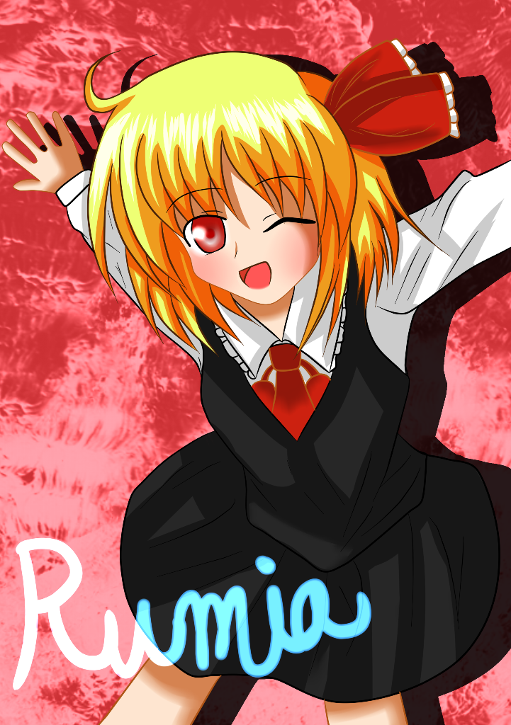 1girlbad anatomyblonde hairblushfemale focushair ribbonone eye closedopen mouthpoorly drawnred eyesribbonshort hairsolowink