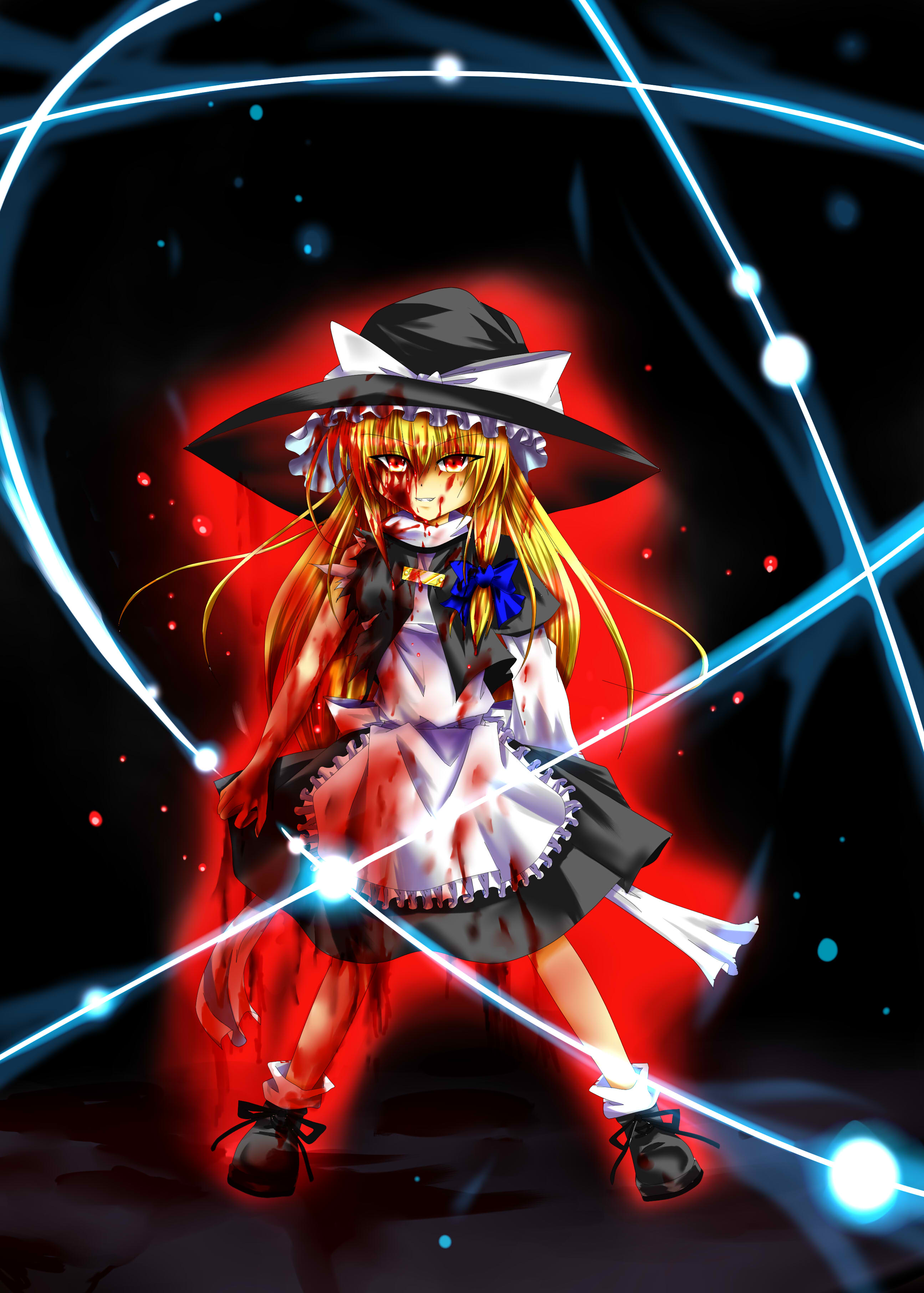 1girlblonde hairbloodfemale focusfull bodygradient backgroundhatinjurymagicred eyesskirtsolotorn clotheswitchwitch hat