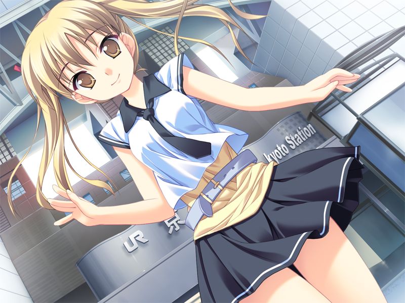 1girlbackstagebeltblonde hairbrown eyescasualdutch anglefemale focuslong hairnecktieskirtsmilesolotwintails